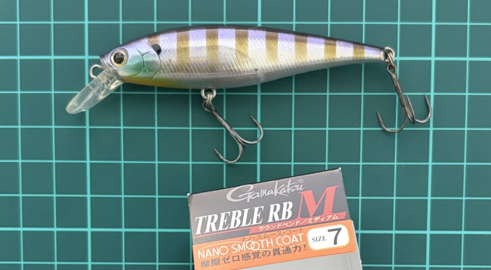 フックに関しても個体差は有りますが、総じて0.4g以下のフックが多く感じます。ビーフリーズ78自体が割とアピールの強いミノーのため個人的には重いフックは適さないと感じます。