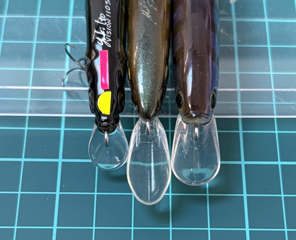 フェイス87のリップは長いものの他のジャークベイトに比べて細く水を掴み難く逃がしやすいと感じます。そのためか強めのジャークや早巻きでは動きが破綻しやすいものの弱いトゥイッチや低速巻きでもレスポンス良く動かし易い印象です。
