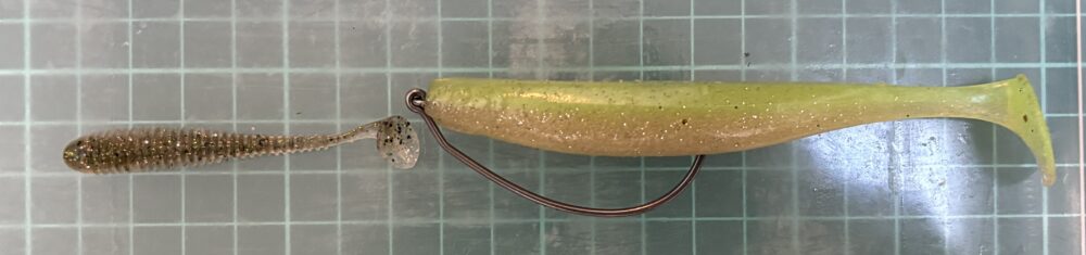 ただ難点が、当然なんですがアピールが小さい事。特に濁った状況だとルアーを見つけてもらえず、バイト誘発力が高くても全く使い物になりません。カバーや障害物周り、ウィードジャングルでも同様です。ワームが小さい分、オフセットなどでフックを隠しても針先が露出しやすく、根掛り回避性が高いとは感じません。
